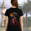 Camiseta negra para mujer con diseño exclusivo de dragón y guerrera, creada por CositasCostura™. Una prenda original y llamativa, perfecta para quienes buscan camisetas diferentes con estilo propio e identidad de ciudad.