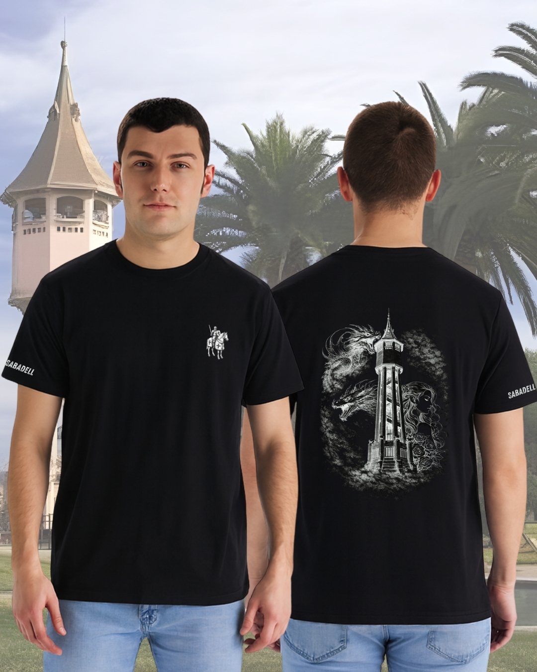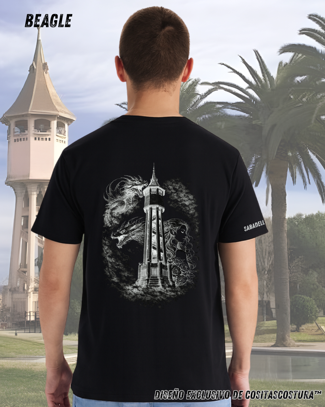 Camiseta Negra Hombre Diseño Exclusivo Dragón en la Torre del Aigua – CositasCostura™
